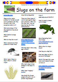 What damage do slugs do to crops? What ways are available to control them? Students can use the weblinks to guide their own research into finding out all about slugs!